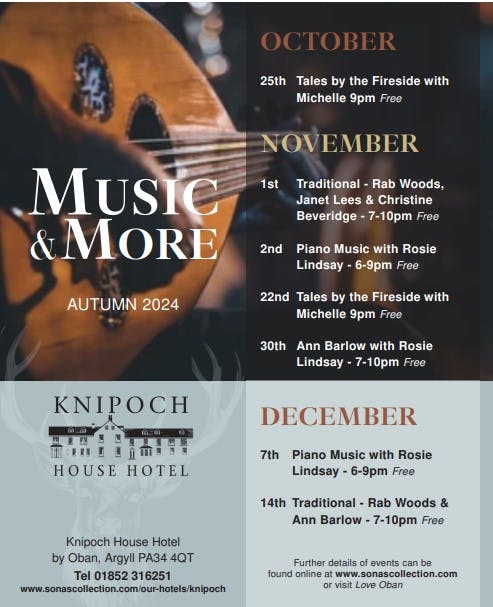 Get your toes tapping with traditional music at Knipoch House Hotel.